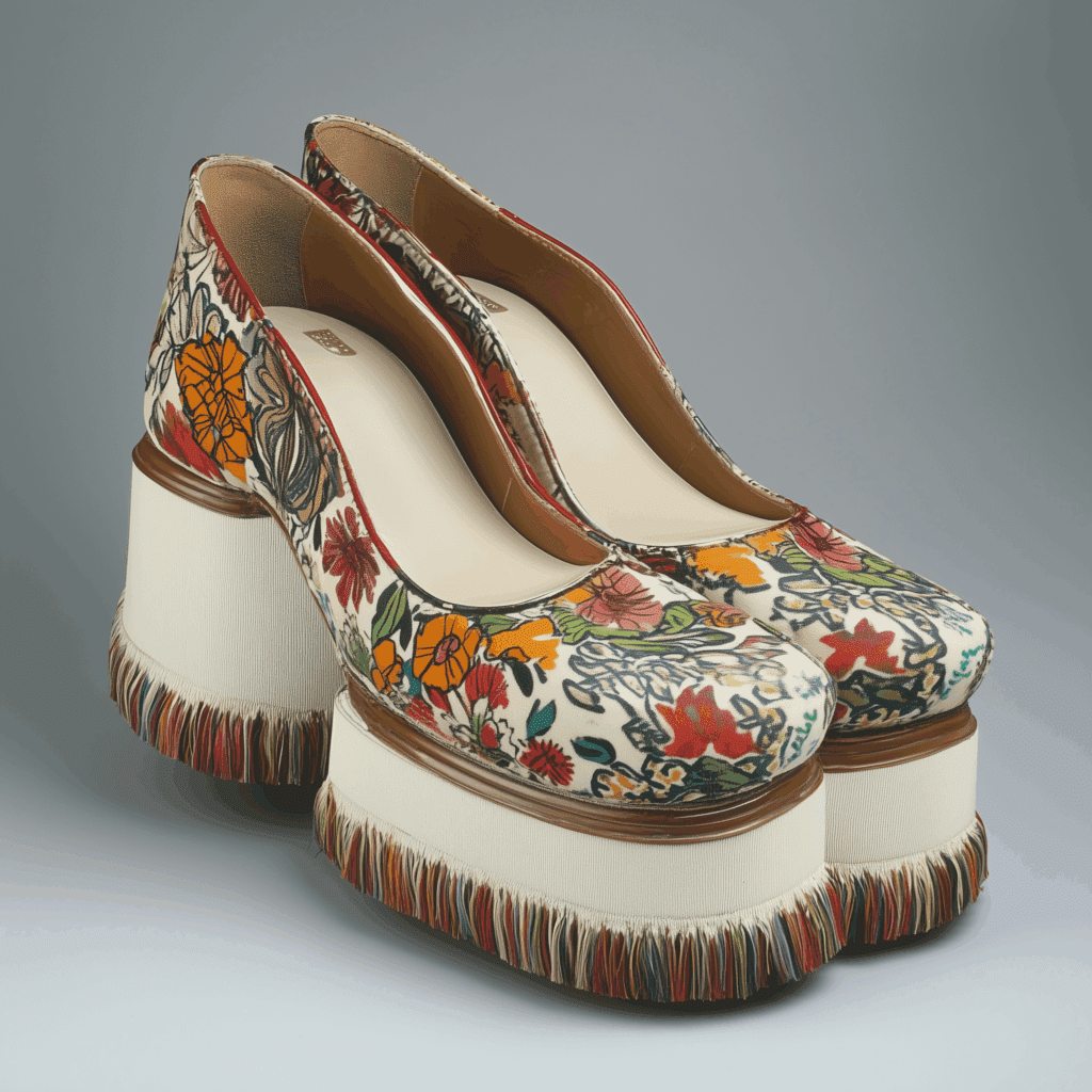 Let’s start with the iconic platform shoe. Originally inspired by 1930s and 1940s styles, platforms roared back to life in the 1970s with new disco flair. Characterized by thick soles—often 2 to 5 inches high—these shoes weren’t designed for subtlety. Platform boots, sandals, and pumps came in patent leather, metallic finishes, or even translucent plastic, making them perfect for catching the light on the dance floor.