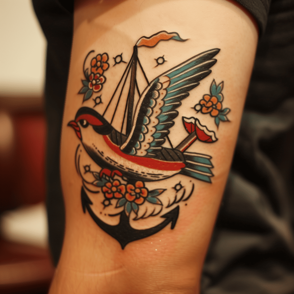 Sailor Tattoos: Traditional nautical symbols such as anchors, swallows, and ships remained popular, especially among veterans and sailors.